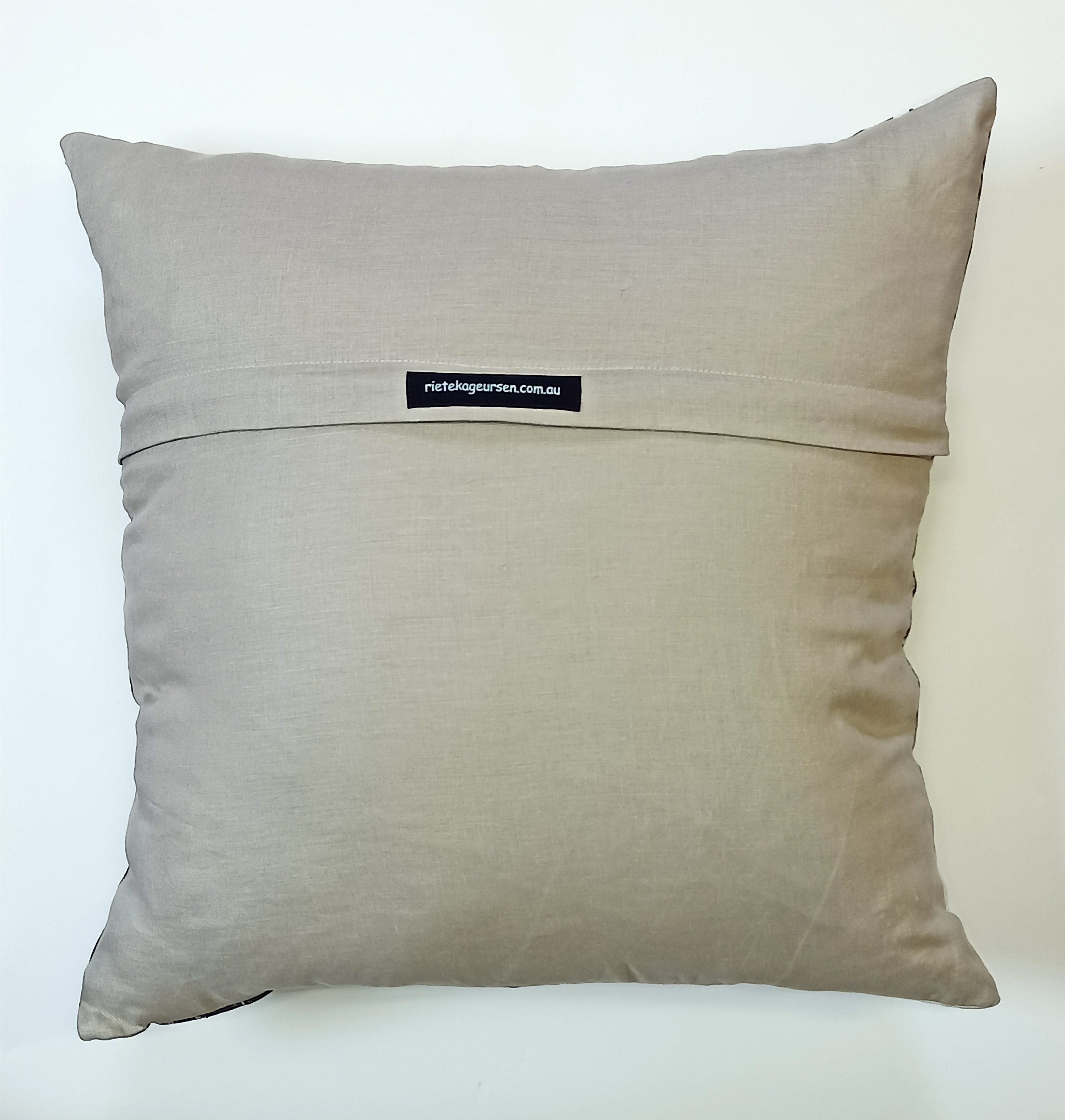 Image on one side only with invisible zip. Available with oatmeal backing.