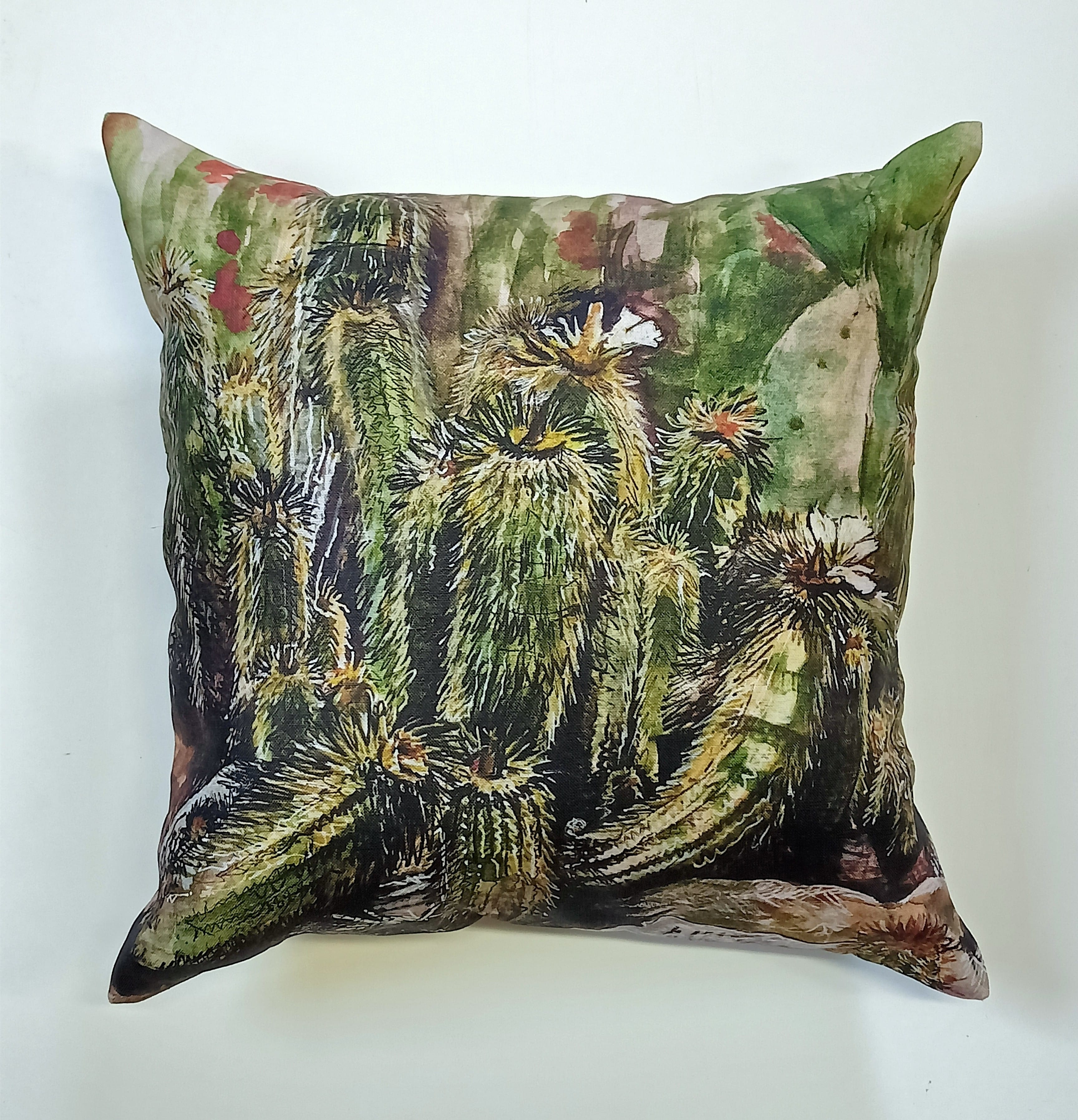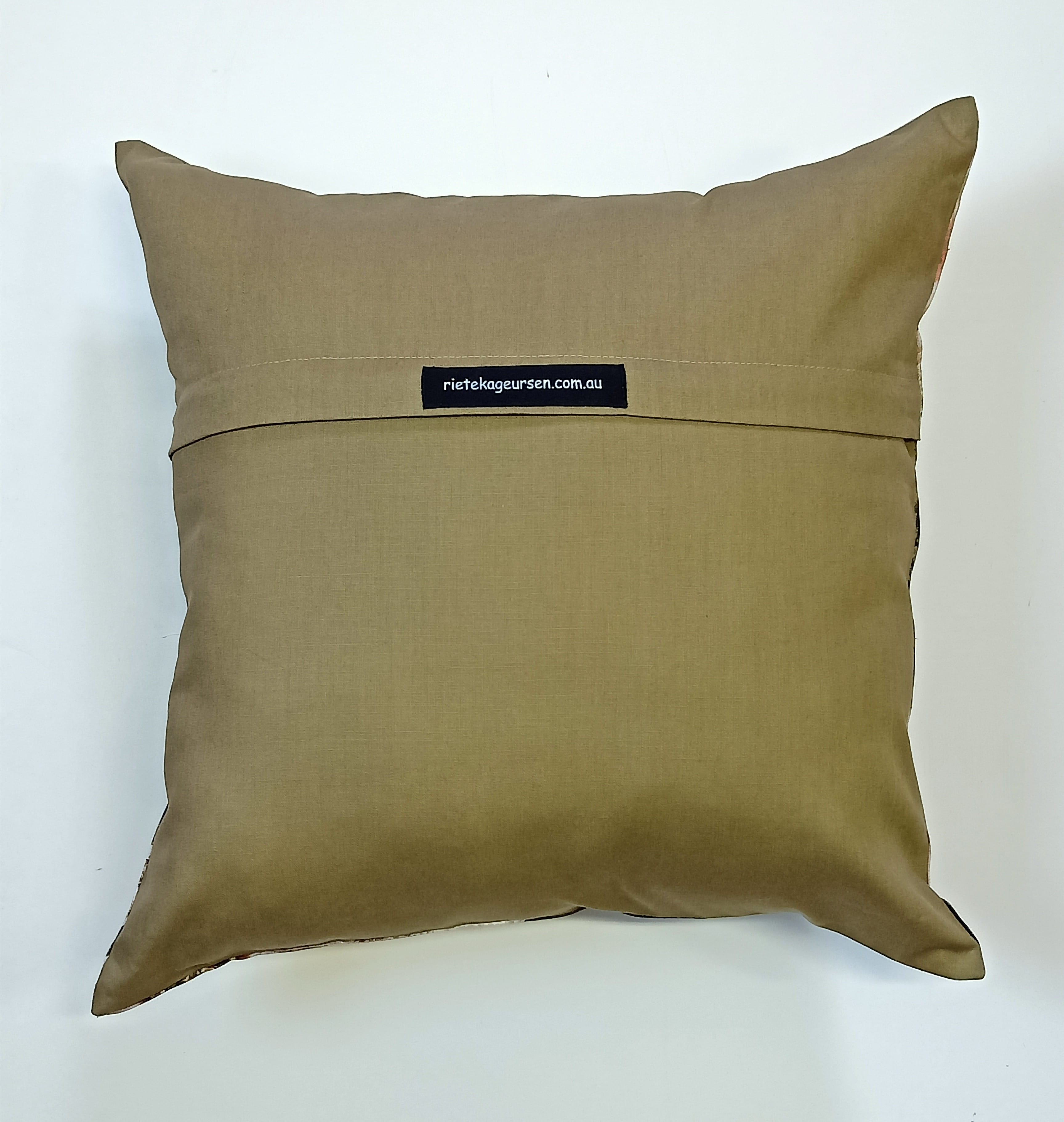Image on one side only with invisible zip. Available with teak green backing.